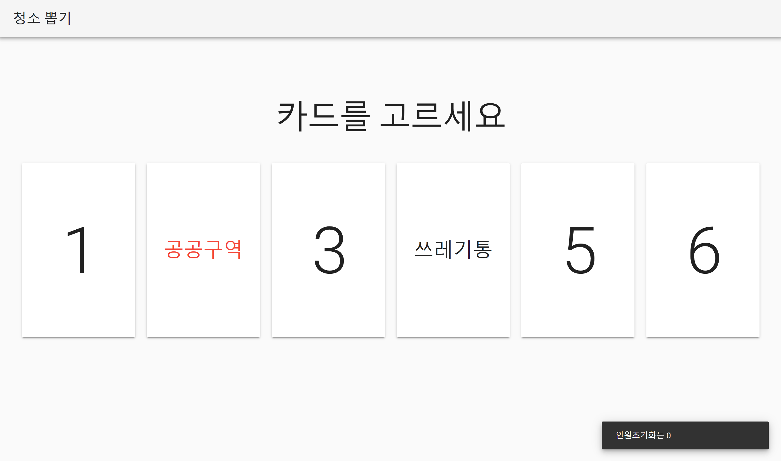 가위바위보로 정한 순서대로 랜덤으로 섞인 청소구역을 고르는 방식이다.